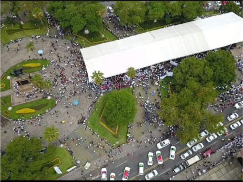 Según reporte oficial en áreas de gobernación, la asistencia con trabajos llegó a los 2 mil personas, incluyendo a los que fueron obligados como a los trabajadores de la secretaría de salud, pues el dirigente FABIO MEZA hizo la convocatoria como obligatoria para los miembros de la sección 21 del SNTSA, trabajadores que mandaron al diablo a su líder, pues si hubieran asistido, ellos llenarían la plaza solos y les sobrarían trabajadores.