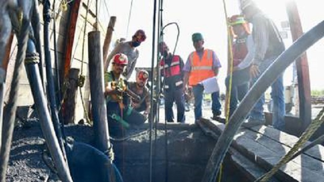 Al inicio de los trabajos de búsqueda y rescate, la altura promedio del tirante de agua en los pozos se midió en 41.47 metros; después de 11 días de trabajo, los tirantes registraban una altura de 3.15 metros en promedio.