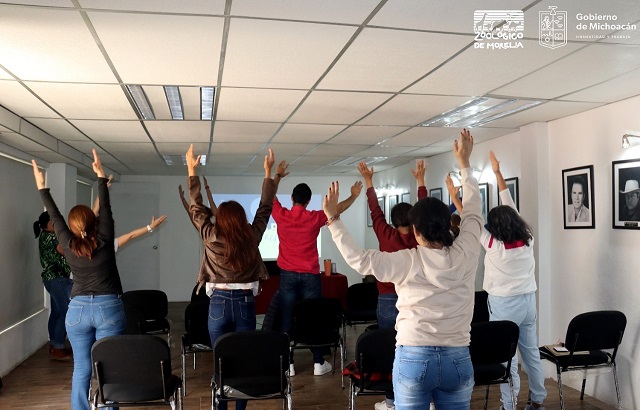 Durante la jornada de prevención, personal de la Comisión Estatal de Cultura Física y Deporte (Cecufid) acudieron al recinto faunístico a dar una clase de activación física en la que participaron los trabajadores del zoológico y un grupo de escolares.