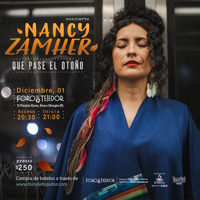 Nancy Zamher comienza con el cierre de una etapa profesional que inició en 2015, y duró siete años de trabajo, una larga producción que presentará junto a su banda en el Foro del Tejedor el jueves 1 de diciembre a las 20:00 horas en el que el público disfrutará de su primer disco Raíces (2021), y de la producción que lanzará en los próximos meses. Acompaña a Nancy Zamher en este cierre de ciclos a través de un viaje de sonidos eclécticos, ritmos fusionados e historias muy a la mexicana.