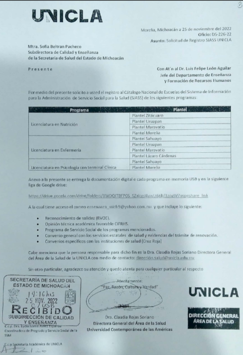 Preguntando por aquí y por allá, logramos saber que otra vez, la Universidad Contemporánea de la Américas, tiene como su directora del área de la salud a la Doctora CLAUDIA ROJAS SORIANA, que es la que se encarga de gestionar los famosos REVOES, empero, resulta que ROJAS SORIANA también presta sus servicios en la secretaría de salud en el estado y se aprovecha de esta dualidad para gestionar ilegítimamente los REVOES.