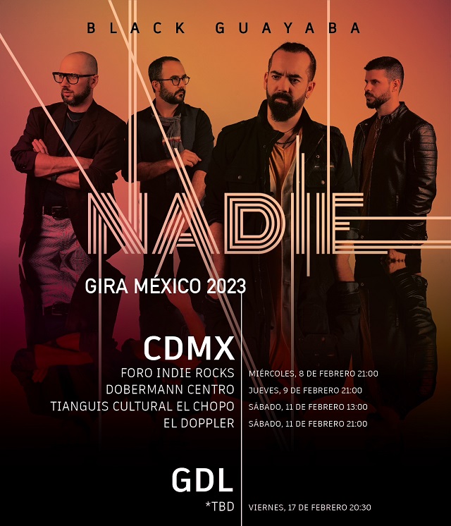 La banda de Pop-Rock Puertorriqueña Black Guayaba llega a México dentro de su gira “Nadie” cuyo nombre se extrae del sencillo que está próximo a estrenarse el 8 de febrero en sus plataformas digitales.