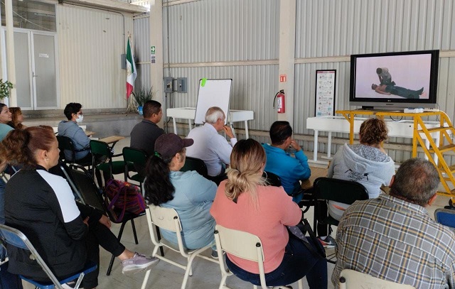 En el hangar de esta Dirección, los integrantes del cuerpo de paramédicos de vuelo impartieron este curso a cerca de 30 maestras y maestros de la Escuela Primaria “Emiliano Zapata”, con el objetivo de otorgarles las herramientas necesarias que les permitan contar con los conocimientos para poder salvar vidas ante alguna situación de riesgo clínico, en sus áreas de trabajo.