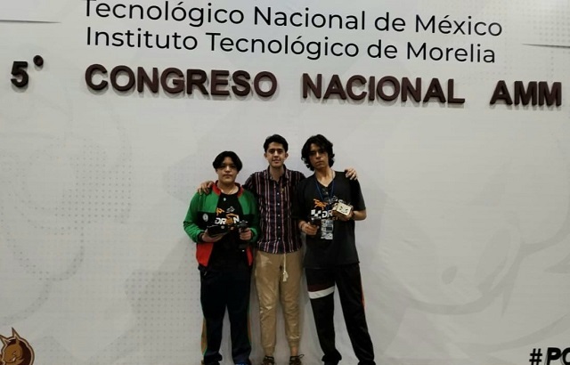 Estudiantes de la carrera de Robótica Industrial del Colegio de Estudios Científicos y Tecnológicos del Estado de Michoacán (Cecytem), ganaron medalla de oro en el Quinto Congreso Nacional de Mecatrónica y Robótica, organizado por el Instituto Tecnológico de Morelia.