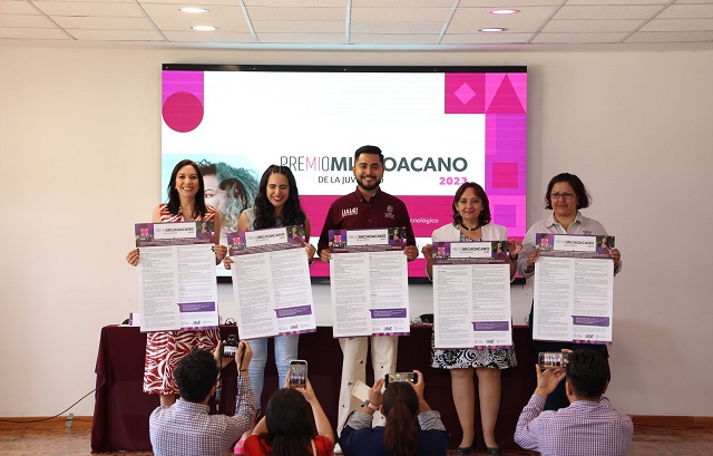 Morelia, Michoacán, 14 de junio de 2023.- El Instituto de la Juventud Michoacana (Ijumich) dio a conocer la convocatoria para participar en el Premio Michoacano de la Juventud 2023, que tiene el propósito de reconocer públicamente los logros, talentos, aportaciones, y compromiso social de las y los jóvenes michoacanos, para convertirse en un ejemplo e incentivo para sus contemporáneos, motivándolos a comenzar, impulsar o consolidar proyectos en beneficio de la sociedad.
