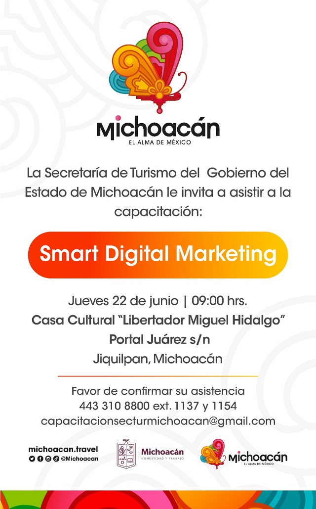El jueves 22 en Jiquilpan, la Casa Cultural Libertador Miguel Hidalgo fungirá como sede para el curso titulado Smart Digital Marketing.
