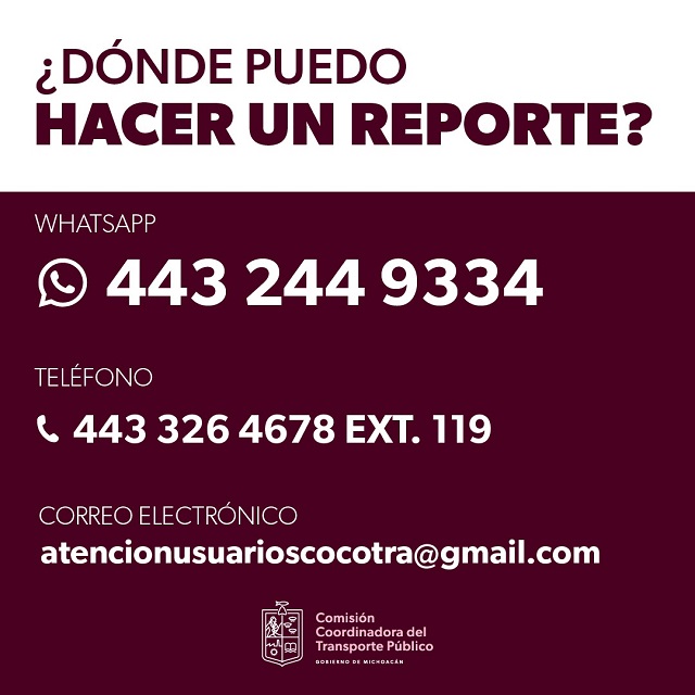 Existe un crecimiento en la confianza de las personas usuarias del servicio hacia la Comisión Coordinadora del Transporte Público de Michoacán (Cocotra), así lo refleja el incremento de un 60% en la cantidad de reportes recibidos en el primer semestre del 2023, respecto al mismo periodo del año anterior.