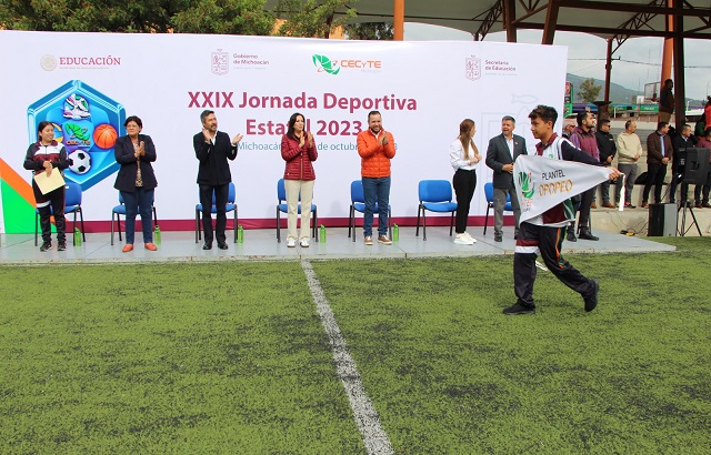 Morelia, Michoacán, 9 de octubre de 2023.- Con la participación de más de 700 estudiantes y entrenadores de 35 planteles, el Colegio de Estudios Científicos y Tecnológicos del Estado de Michoacán (Cecytem) arrancó este lunes su XXIX Jornada Deportiva Estatal 2023.