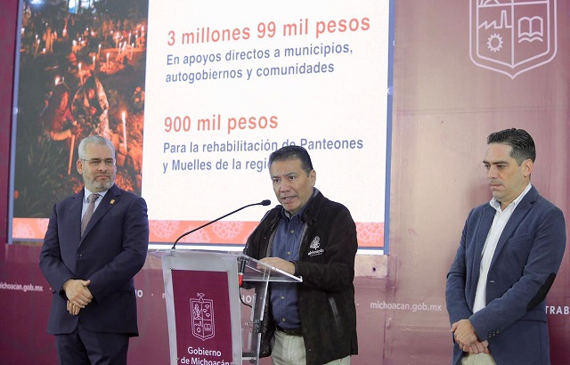 Por su parte, el secretario de Turismo, Roberto Monroy García, dio a conocer que en próximos días se entregarán 3 millones 99 mil pesos en apoyos directos a municipios y comunidades con autogobierno, destinados a la ornamentación y el acondicionamiento de panteones.