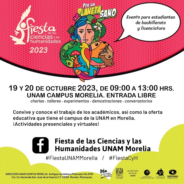 Con más de 60 actividades la Onceava Edición de la Fiesta de las Ciencias y las Humanidades (FCyH) se realizaráel próximo 19 y 20 de octubre, en la UNAM Campus Morelia, en un horario de 9:00 a 13:00 horas.