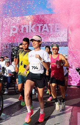 La música y los polvos de color rosa que se distribuyeron en distintos puntos de la ruta, añadieron un tono alegre y divertido para familias enteras que se sumaron a esta iniciativa.