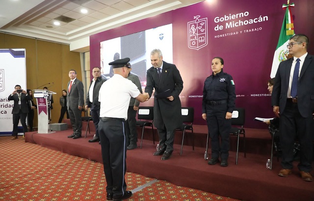 “Esta ceremonia es un decidido homenaje para el personal que optó por la superación personal y profesional. Que a pesar de estar lejos de sus familias, diariamente laboran con convicción y vocación de servicio”, subrayó el secretario de SP.