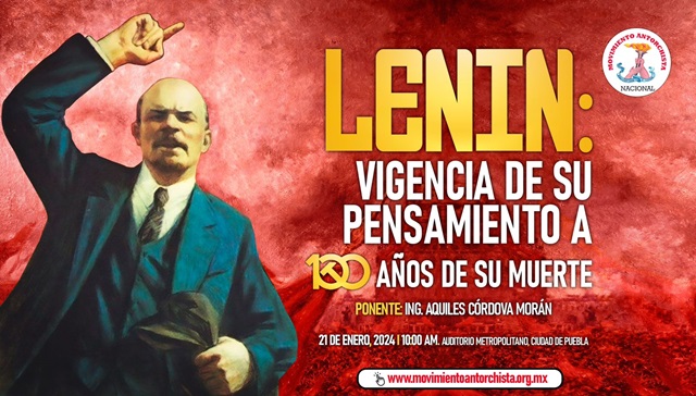 Ciudad de México.-El Ingeniero Aquiles Córdova Morán, líder nacional del Movimiento Antorchista, ofrecerá la conferencia “Lenin: Vigencia de su pensamiento a 100 años de su muerte”, el próximo domingo 21 de enero en el Auditorio Metropolitano de la Ciudad de Puebla. Ante esto,Homero Aguirre Enríquez, vocero nacional de la organización,destacó la importancia de que las ideas del revolucionario ruso, Vladimir Ilich “Lenin”, sigan presentes entres las masas trabajadoras, ya que es el único camino para su verdadera liberación: “Lenin y los bolcheviques fueron los primeros en demostrar, en los hechos, que el pueblo puede cambiar su propio destino; organizado en un partido revolucionario y luchando por el poder político que permita condiciones dignas de trabajo y una distribución equitativa de la riqueza”.