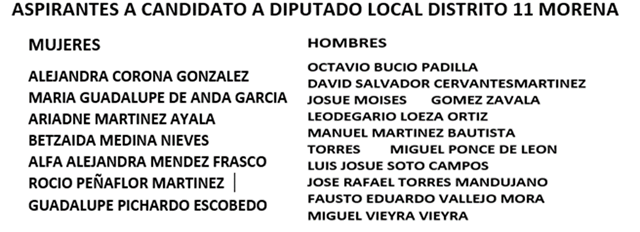 MÁS NOMBRES DE ASPIRANTES A DIPUTADO DE MORENA