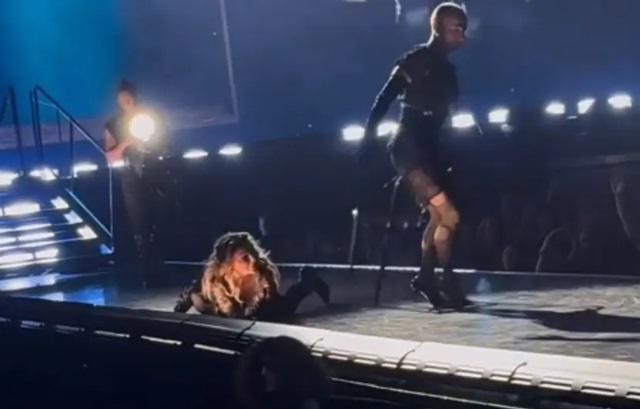 Es común que los artistas se caigan durante los conciertos que dan para miles de fanáticos y la ‘reina del pop’, Madonna, no debía ser la excepción, esto porque uno de sus bailarines la tiró mientras hacían una coreografía.