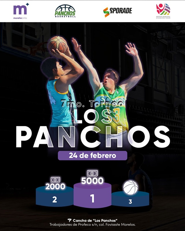 Morelia, Michoacán, a 23 de febrero de 2024.- Con una bolsa en efectivo de 5 mil pesos para el primer lugar; además de 2 mil para el subcampeón y un balón de la marca Molten para el tercero, el Comité Organizador del Torneo de Basquetbol “Panchos” dio a conocer la convocatoria del presente año. Al momento se tienen inscritas 12 quintetas, mismo que dará comienzo el sábado 24 de febrero en la cancha de la Unidad Deportiva Fovissste-Morelos.