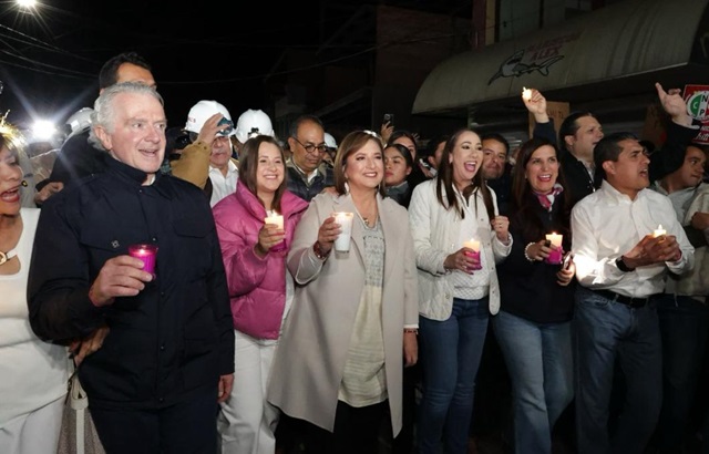 Acompañada de madres buscadoras, médicos, ganaderos, mineros y cientos de ciudadanos que portaron velas y antorchas, la ingeniera se solidarizó con los habitantes de Fresnilloque a diario viven extorsiones del crimen organizado, asaltos, masacres de jóvenes, feminicidios, las mujeres desaparecen, hay narcobloqueos, fugas de reos, asesinatos de funcionarios, de policías y de civiles.
