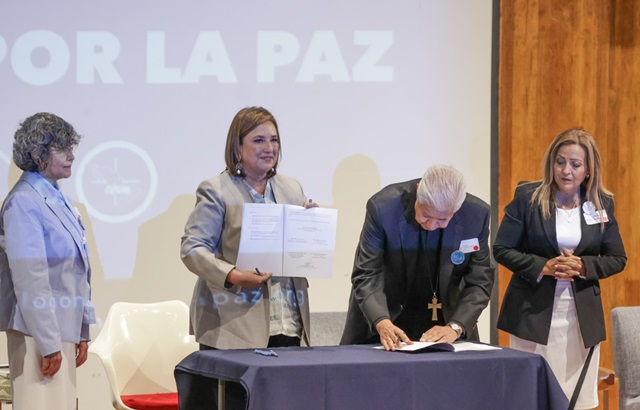 Tras reconocer el papel fundamental que tiene la Iglesia católica en la reconstrucción de la paz, la candidata a la Presidencia de la República por el PAN, PRI y PRD, Xóchitl Gálvez Ruiz, firmó hoy el Compromiso Nacional por la Paz, un documento que consta de siete puntos diseñados por obispos católicos, como resultado de un diálogoentre más de mil 600 instituciones.