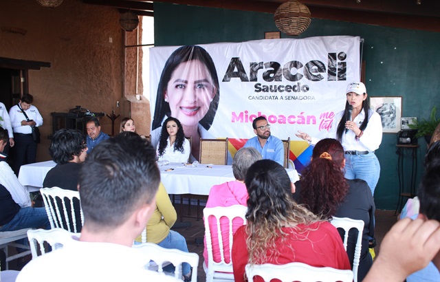 Lamentó que esta tierra de hombres y mujeres trabajadores, enfrenten diversos problemas y exista indiferencia por las autoridades -Se comprometió con las y los maestros llevar al Senado una propuesta de reforma por sus derechos laborales y los convocó a foro sobre educación que se realizará en abril próximo -Acordó gestionar y legislar para impulsar el desarrollo de Tacámbaro en coordinación con los diversos sectores Por Michoacán y Tacámbaro ¡vamos por la construcción de una cultura de paz!, pues resulta urgente caminar en torno a una convivencia armónica entre los derechos de todas y todos, recalcó Araceli Saucedo Reyes, candidata al senado de la República por la Coalición Fuerza y Corazón por México.En Tacámbaro, la candidata lamentó que esta tierra de hombres y mujeres trabajadores, con un profundo compromiso por sacar a los suyos adelante, sufra de manera permanente por la violencia y la inseguridad debido a que las autoridades federales y estatales han fallado en su responsabilidad de garantizarla.“Solapar, omitir y no actuar frente a inseguridad cuando se es gobierno, aún a costa de las vidas y la tranquilidad de las personas, es una traición a la patria y a un país que depositó en ellos la máxima responsabilidad de la tarea pública”.Araceli Saucedo condenó que durante esta administración federal, 103 personas en Tacámbaro hayan sido víctimas por homicidios dolosos, y 299 de lesiones dolosas, tomando en cuenta sólo quienes acuden a presentar una denuncia.“En la Coalición Fuerza y Corazón por México estamos decididas y decididos a cambiar esa realidad que no sólo aqueja a Tacámbaro y nuestro querido Michoacán, sino que de manera lacerante priva en todo el territorio nacional, con imágenes que nos horrorizan día a día”.“Por eso les reitero desde aquí mi compromiso y convicción para como senadora de la República, impulsar todas las acciones e iniciativas que sean necesarias para generar mayores y mejores condiciones de seguridad para nuestro estado poniendo siempre a las y los michoacanos en el centro de las políticas públicas”.Araceli Saucedo se comprometió con las y los maestros de Tacámbaro y de esta región a legislar desde el Senado República por los derechos laborales y mejores condiciones para los docentes y los convocó a asistir al foro sobre Educación que realizarán en abril próximo para construir juntos diversas propuestas.De igual forma, se comprometió a gestionar y legislar para que se impulse el desarrollo de las distintas regiones de Michoacán como Tacámbaro.Manifestó todo su respaldo y apoyo para las familias de Tacámbaro, tras reunirse con empresarios y los distintos sectores sociales.