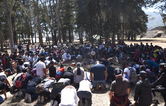 Desde la zona arqueológica, mujeres portadoras del fuego levantaron el humo del copal y ofrendaron su palabra. “Aquí y ahora está la esencia de nuestro corazón y nuestra habla; por eso están los que cantan, los que bailan y los que tocan con el espíritu de nuestros ancestros y ancestras; por eso estamos aquí hoy para pedirles permiso”, dijo Nana Josefina Chávez Guerrero, de Cherán.