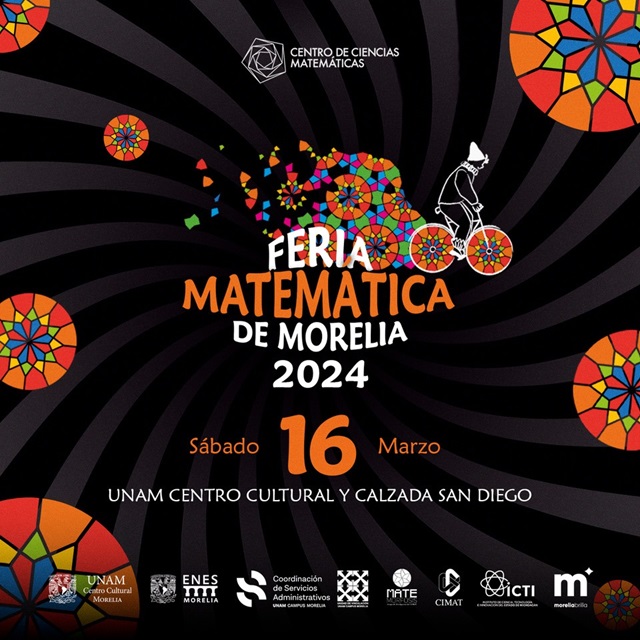 El próximo sábado 16 de marzo, a partir de las 10:00 am y hasta las 6:00 pm, tendrá lugar la Feria Matemática de Morelia 2024, misma que este año regresa al centro histórico de la capital michoacana organizada por el Centro de Ciencias Matemáticas (CCM) de la UNAM Campus Morelia. El evento se llevará a cabo sobre la Calzada Fray Antonio de San Miguel (también conocida como la Calzada de San Diego) y en las instalaciones del Centro Cultural de la UNAM en Morelia.