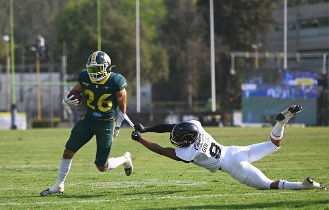 La línea defensiva de los Raptors del Valle de México recuperó su capacidad para contener a los atacantes rivales mientras Luis Humberto López Tinoco y Kevin Brian Correa realizaron un gran juego acarreando el ovoide a lo largo del partido jugado en el estadio de la FES Acatlán, para que la #FuriaVerde volviera a la senda del triunfo al ganar 14-6 a los Galgos de Tijuana que no pudieron correr a su gusto a las diagonales.Y pese a que los Galgos comandados por el ex quarterback suplente de los Halcones Marinos de Seattle, Trevone Boykin logró apenas su primer touchdown de la temporada en un inicio de 0-3, la defensiva de los Raptors se impuso en los momentos cruciales, como la intercepción a falta de 1 minuto y medio de juego por Daniel Flores, para acabar con las esperanzas del equipo de la frontera norte mexicana.En un juego bastante rápido porque se realizó mayormente por tierra, López Tinoco y Correa fueron fundamentales en el ataque del equipo de casa, ya que no sólo lograron acarrear el balón durante varias jugadas y un gran número de yardas, sino que lograron cruzar las diagonales en las dos primeras ofensivas de Raptors.Tras 8:15 minutos jugados Luis Humberto López Tinoco alcanzó las diagonales a base de fuerza en las piernas y coronar de esta forma la primera ofensiva de los Raptors, tras dos corridas de Kevin Brian Correa y una del mariscal del campo Johan López, quien también alcanzó a Luis Alberto Villegas con un pase dentro en la zona roja para el 7-0 con el extra de Alberto González.En este juego que se realizó muy rápido por los escasos castigos, en apenas la segunda ofensiva de la #FuriaVerde, Kevin Brian Correa realizó una de sus clásicas corridas hacia el lado derecho y consiguió aumentar el marcador a 14-0, con el segundo punto extra anotado por el pateador González.Los Galgos lograron anotar su primer touchdown en tres partidos sobre el segundo cuarto del juego, cuando en jugada iniciada a falta de 2 yardas para anotar tras una interferencia de Mandujano a Luis Araujo, Joshua Mack acarreó el balón a base de empuje para los únicos 6 puntos del equipo rival, ya que Paul Jonathan Ortiz falló el punto extra y, más adelante, un gol de campo antes de cerrar el primer tiempo.Boykin no pudo hacer mayor daño a la defensiva de los Raptors porque tanto James Okike como Brandon Niebla en dos ofensivas distintas, dejaron caer sendos pases que los ponían muy cerca de la anotación, como reflejo del mal inicio de la temporada del equipo de Tijuana.