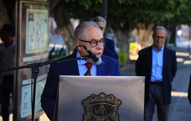 Durante el acto Carlos Hiriart Pardo, profesor Investigador de la UMSNH y orador oficial de dicho evento, informó que el 18 de abril se estableció por el Organismo Consultor de la UNESCO, (ICOMOS) como el día mundial de los monumentos, por lo que en esta fecha se toman temas que reflejan la preocupación global sobre el estado que guarda el Patrimonio Cultural y el tema para este 2024 es la Carta de Venecia en la que establecen los principios comunes que deben presidir la conservación y la restauración.