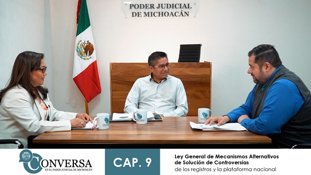 Morelia, Michoacán, 28 de mayo de 2024. El Poder Judicial de Michoacán ha creado un espacio llamado Conversa, en el que especialistas analizan novedades incluidas en la nueva Ley General de Mecanismos Alternativos de Solución de Controversiasy en el Código Nacional de Procedimientos Civiles y Familiares.