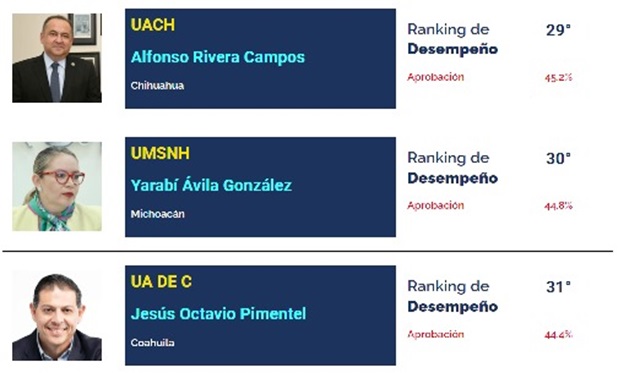 La evaluación implica una vez más, la calificación que ciudadanos en general de sus respectivos estados, otorgan a los máximos jerarcas de sus universidades públicas en torno a temas como calidad de la educación, compromiso para ampliar la matrícula, mejora de las instalaciones, y acciones para mejorar el entorno, revela en su publicación la empresa encuestadora.