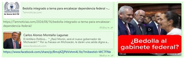 Inclusive, en más de algún medio, se especuló la posibilidad de que RAMÍREZ BEDOLLA sea llamado al gabinete de la señora CLAUDIA SHEINBAUM para ocupar la titularidad de una institución encargada de los asuntos sobre propiedad industrial, derechos de autor y denominación de origen, materias en las que se le atribuye al jefe del poder ejecutivo estatal, mucha experiencia y conocimiento, elementos que harían que SHEINBAUM PARADO lo llame al gabinete ampliado.