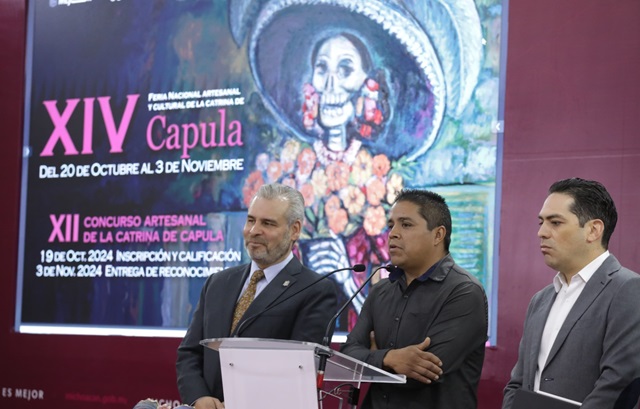Morelia, Michoacán, 14 de octubre de 2024.- El gobernador Alfredo Ramírez Bedolla anunció que todo se encuentra listo para el inicio de la edición 14 de la Feria de la Catrina de Capula, la cual se desarrollará del 20 de octubre al 3 de noviembre.