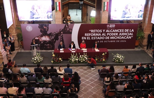 Morelia, Michoacán, a 18 de octubre de 2024.- La democratización del Poder Judicial fue una decisión del pueblo que acudió a las urnas, para otorgar al Constituyente la facultad de llevar a cabo esta reforma, que permitirá otorgar legitimidad y el fortalecimiento de la institución judicial en México.