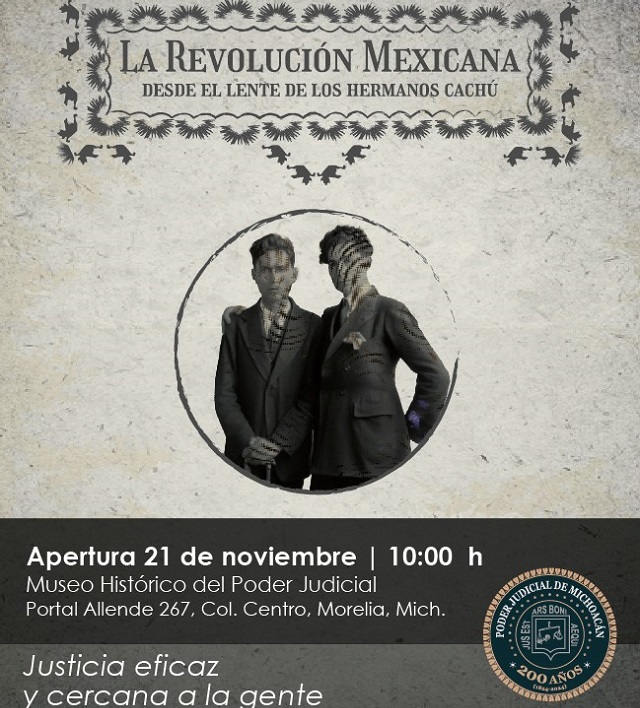 Morelia, Michoacán a 18 de noviembre de 2024. Con la finalidad de difundir la memoria documental institucional que muestra la evolución y desarrollo de la impartición de justicia en el estado, el Poder Judicial de Michoacán presentará la exposición fotográfica “La Revolución Mexicana desde el lente de los hermanos Cachú”.