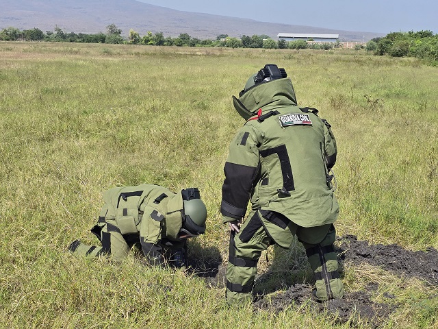 Los explosivos, con características de cuerpos de granadas para dron de diferentes tamaños que contenían distintos tipos de carga en pólvora y percloratos, fueron desactivados en el sitio en mención. La detonación se realizó de forma controlada con medios electrónicos y cargas huecas.