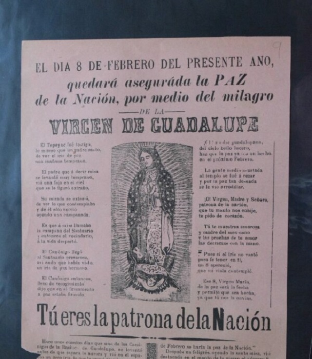 El 12 de diciembre, creyentes católicos de México celebran la aparición de la Virgen Guadalupana a una persona indígena de nombre Juan Diego, quien en su ayate grabara la imagen de la Virgen, misma que hasta hoy en día se venera por miles de mexicanos, quienes le siguen atribuyendo milagros o “favores”. Por tanto, en el marco de la celebración, la investigadora comparte fragmentos de lo que hoy en día, dentro del imaginario nacional de México, es una de las celebraciones religiosas más populares. El propósito de las investigaciones sobre impresos populares es, además del rescate, preservación y resguardo de los originales, revitalizar todos estos textos y demostrar su vigencia y relevancia para el contexto nacional.