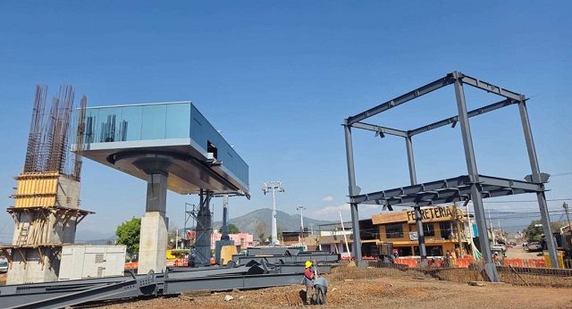 En la Estación 1, el progreso es del 97.04 por ciento en el sistema electromecánico, 100 por ciento en mástiles y 29.41 por ciento en la obra civil. El avance en obra electromecánica contempla el suministro, fabricación, embarque y montaje de elementos.