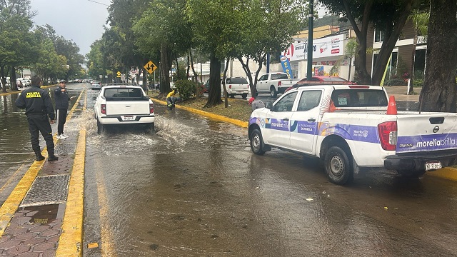 Personal de la Secretaría de Servicios Públicos, la Coordinación Municipal de Protección Civil y Bomberos y Policía Morelia, desplegaron un operativo en calles y avenidas, tras la tormenta que comenzó alrededor de las 13:00 horas.