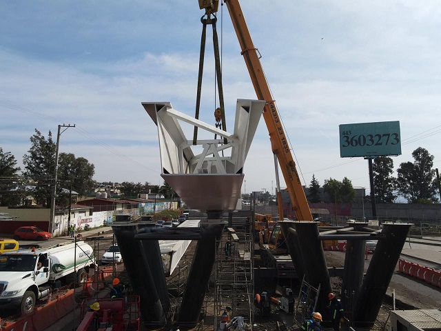 La Secretaría de Comunicaciones y Obras Públicas (SCOP) reportó que la obra, donde se realiza una inversión multianual de 296 millones de pesos, cuenta con un avance del 73 por ciento y que actualmente se lleva a cabo la colocación de 16 trabes metálicas con un peso que aproximado de mil 400 toneladas.