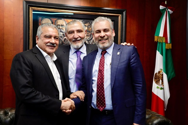Ciudad de México, 18 de febrero de 2025.- El gobernador Alfredo Ramírez Bedolla, el presidente de la Junta de Coordinación Política de la Cámara de Senadores, Adán Augusto López Hernández y el senador Raúl Morón Orozco acordaron respaldar las iniciativas de reforma constitucional de no reelección y nepotismo electoral, propuestas por la presidenta Claudia Sheinbaum Pardo.