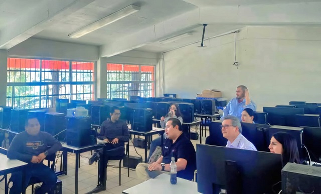 El recorrido por los laboratorios estuvo dirigido y apoyado por Dana Silva Ledesma, directora del plantel y el asesor de la especialidad de IA, Ariel Peña, así como por docentes y coordinadores, quienes aportaron sus experiencias y sugerencias a los compañeros de San Luis Potosí.