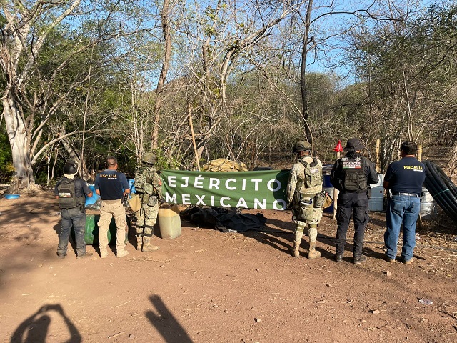 El predio fue detectado sobre un camino de terracería de la localidad de Baztán del Cobre, donde aseguraron 155 tambos con sustancias químicas . Además, 50 bidones de 50 litros, también con sustancias utilizadas para la elaboración de drogas sintéticas. De igual forma, se encontraron 24 cilindros de gas, 17 ollas de peltre tipo vaporera, 120 bultos de sosa cáustica y 80 tambos.