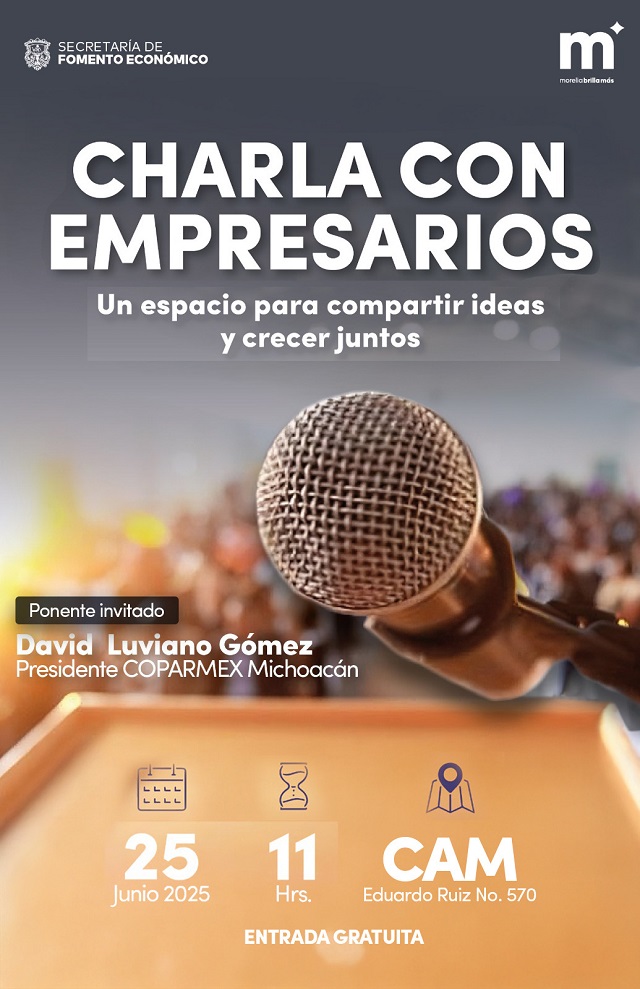 En ese sentido, la dependencia invita a emprendedores y personas que busquen aumentar su conocimiento en el manejo de los negocios y ya cuenten con uno, a asistir a la “Charla con Empresarios”. Ésta no tiene costo de acceso, solo se requiere acudir a la Dirección de Emprendimiento e Innovación, ubicada en el Centro Administrativo de Morelia (CAM) o contactarse al correo electrónico [email protected]