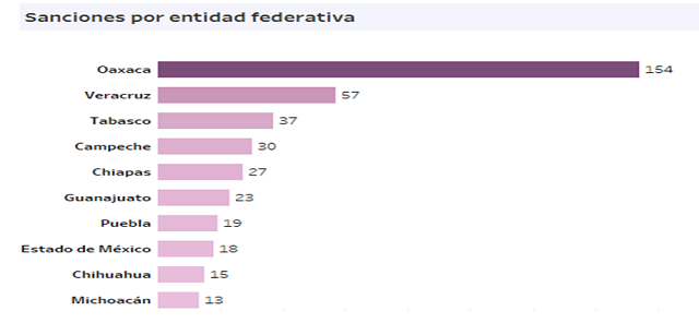 De entrada, hay que señalar, que en total en el país, el Registro Nacional de Personas Sancionadas en Materia de Violencia Política en Contra de las Mujeres en Razón de Género, tiene a 474 personas sancionadas, de las cuales, 385 fueron varones los sancionados y 89 mujeres sancionadas por la misma conducta. Hora bien, los estados de la república que más sancionados tiene son: Oaxaca con 154 personas; Veracruz 57 personas; Tabasco con 37 sancionados; Campeche con 30; Chiapas con 27; Guanajuato con 23; Puebla con 19; Estado de México con 18; Chihuahua con 15 y nuestro estado con 13 en el “honroso” décimo lugar nacional.