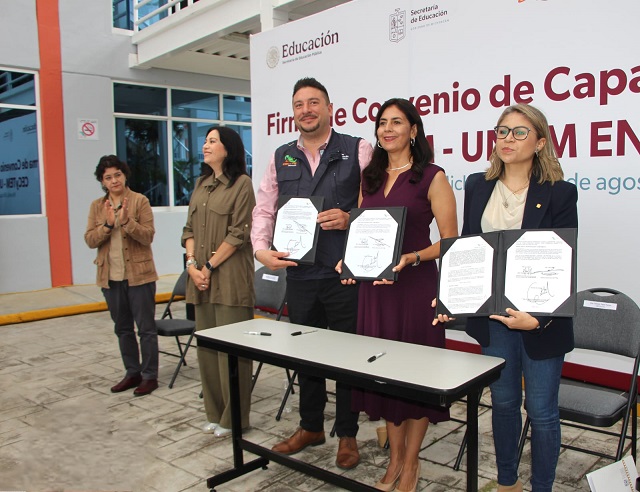 La directora de la ENES Unidad Morelia, Yunuen Tapia Torres, destacó que con este convenio se contribuye a la formación de las y los docentes del subsistema, “sabemos que al fortalecer sus herramientas y conocimientos, estamos fortaleciendo la calidad de la educación que reciben las y los jóvenes michoacanos”.