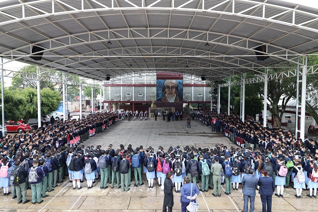 Reunidos en el patio principal de la Escuela Secundaria Federal no. 1 “José María Morelos y Pavón”, el alcalde encabezó la ceremonia cívica, acompañado del director, Ariel Rodríguez Esquivel, cientos de jóvenes, así como personal docente y administrativo de la institución.