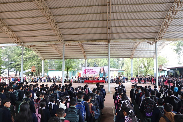 Michoacán inició el ciclo escolar con 935 mil estudiantes de educación básica, en alrededor de 13 mil planteles entre públicos y privados, con más de 50 mil maestras y maestros al frente. La rectora destacó que en los últimos años se han invertido 500 millones de pesos en equipamiento, 2 mil millones de pesos en infraestructura educativa y se entregaron más de seis millones de libros de texto gratuitos.