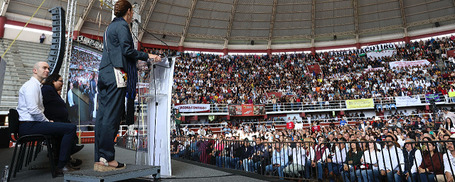 Aunque el Pabellón Don Vasco se llenó casi por completo —con una asistencia estimada de 6 mil personas—, el evento tuvo detalles que contradicen el discurso de inclusión y transparencia: