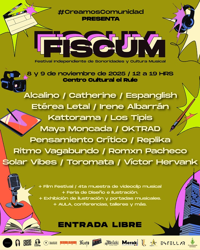 Conciertos, muestra audiovisual, galería de arte, feria de diseño mexicano, conferencias y talleres son algunas de las actividades que este año podrás encontrar al asistir a FISCUM 2025, y, lo mejor, ¡Todas son gratis!