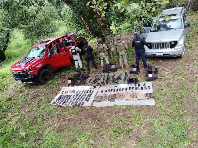 Lo asegurado será puesto a disposición de las instancias pertinentes. De manera simultánea, la SSP y las autoridades federales mantienen un dispositivo de seguridad por aire y tierra en la zona para localizar a civiles armados y garantizar la tranquilidad de la población de Uruapan y sus alrededores.