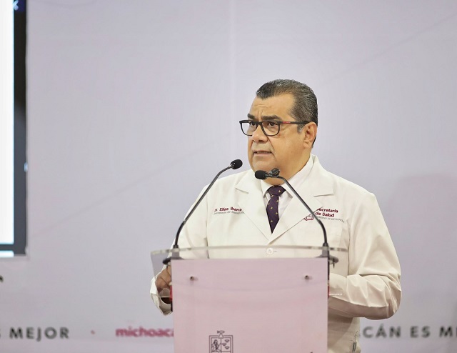 Morelia, Michoacán, 10 de noviembre de 2025.- En rueda de prensa encabezada por el gobernador Alfredo Ramírez Bedolla, el titular de la Secretaría de Salud de Michoacán (SSM), Elías Ibarra Torres, dio a conocer las acciones en el marco del Plan Michoacán por la Paz y la Justicia para robustecer la atención sanitaria en el estado.